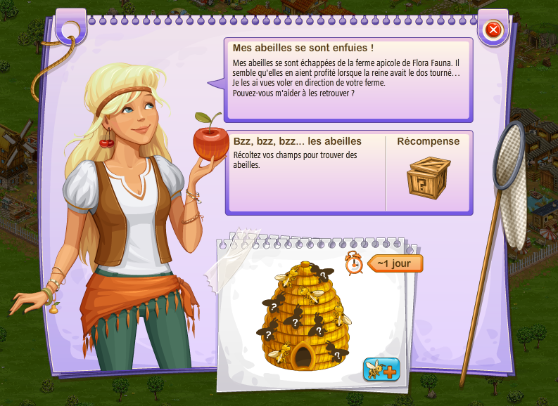 Cet évènement qui pourrait être classé dans les missions, consiste à trouver des abeilles dans les champs. Il dure 36h. Il serait peut-être intéressant de déterminer après combien de blés, maïs et choux on recoit une abeille, mais ça me semble chaud.